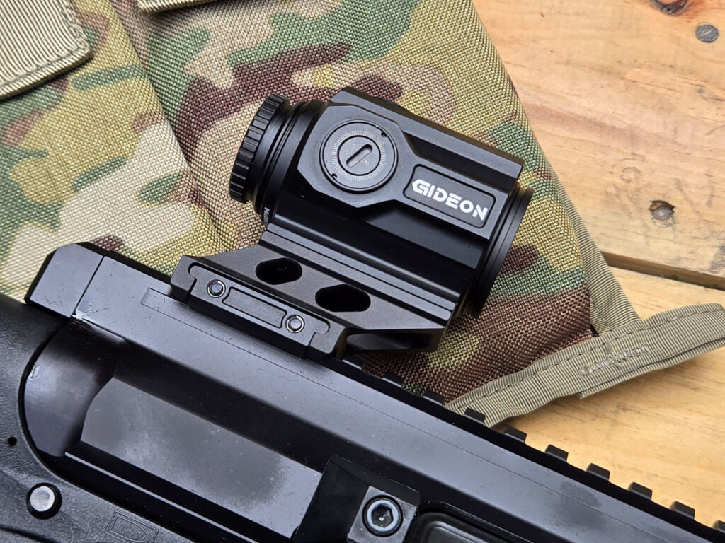 The optics quality on the Gideon is excellent with a crisp sight picture and good light gathering characteristics. The Advocate is parallax free to 100 yards and gives you a 79 foot field of view at that range. The reticle itself is a triangle within a circle that I found easy to pick up and fairly precise. For fast shots close in, just drop the circle or triangle on target. For more precise shots further out use the triangle itself or the tip of the triangle as your aiming point.