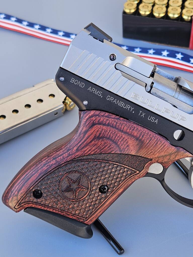 Signature grips, improved exterior machining, and cosmetic refinements that gave the gun a more “Bond Arms” visual identity.