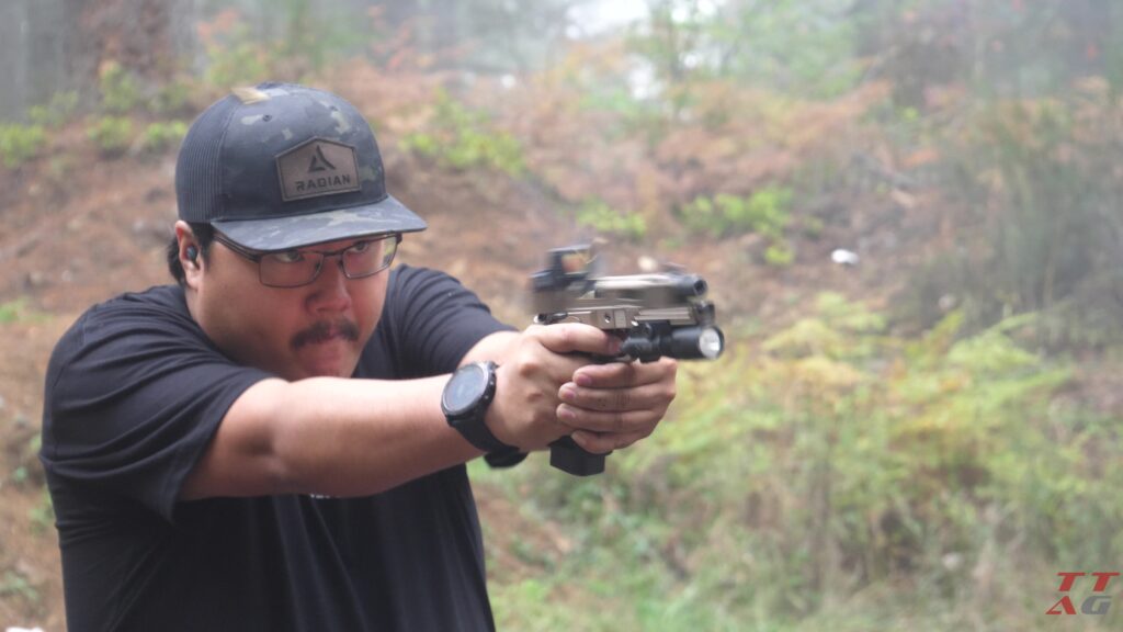 - At the beep, draw your handgun from the holster. Your focus should be on establishing a fast, correct, and solid grip from the beginning, as this is crucial for recoil management.