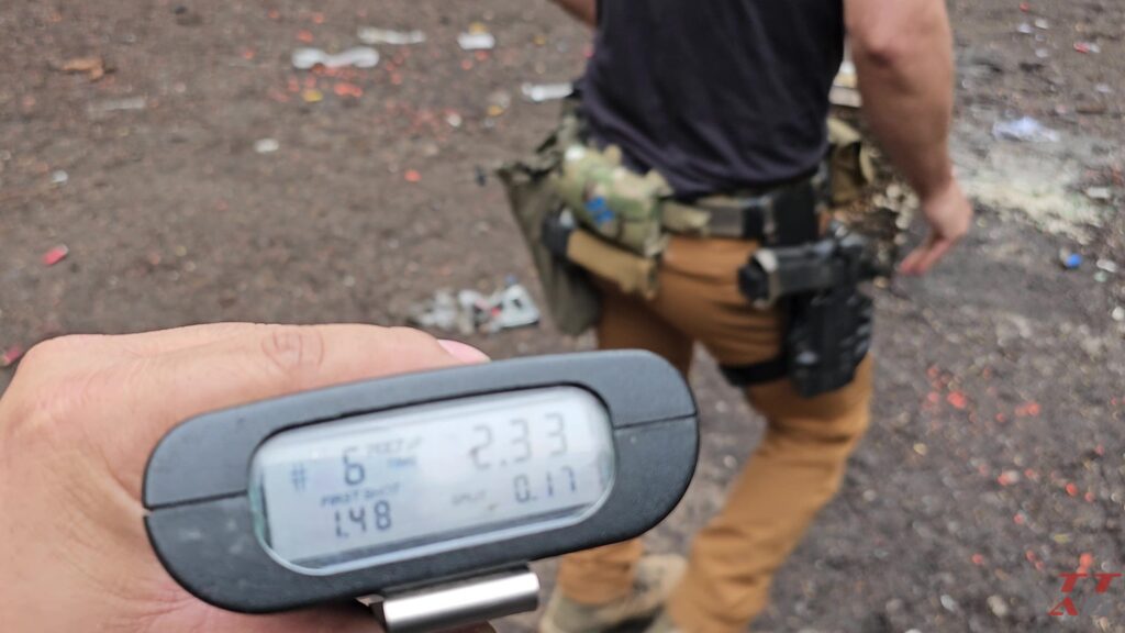 It is very easy to tense up when you’re trying to shoot fast, and when you do tense up in the quest to be faster, you’re inevitably going to get in your own way, and this often manifests in the form of trigger freeze. Many shooting instructors have told me that a good time at this distance with the draw is 1.7 seconds.