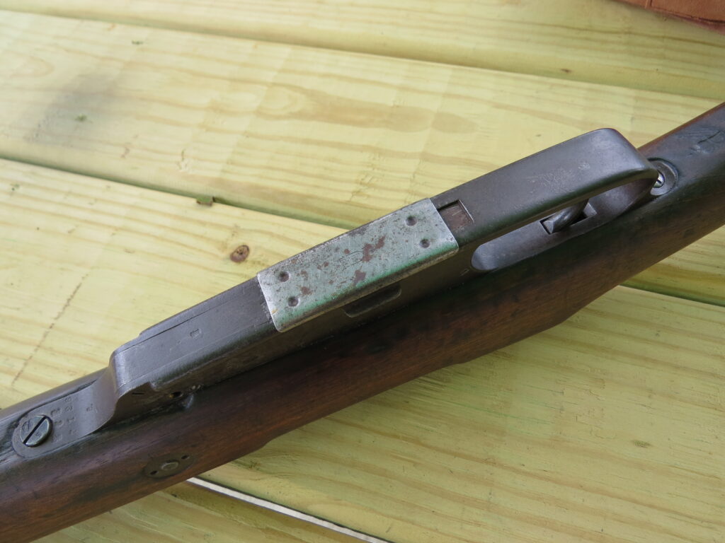 Germany still had millions of Gewehr 88s on hand. Many of those were also converted to take the newer S Patrone round. The basic conversion involved reaming chambers to the new dimensions and re-marking rear sights. An “S” was stamped above the chamber to show the change. In 1905, a more extensive conversion produced the Infanterie Gewehr 88/05.