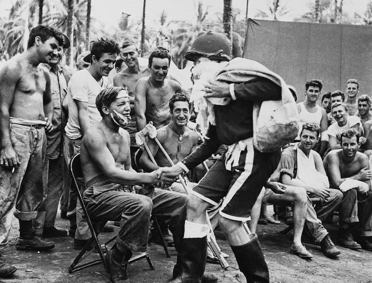On Christmas Eve, President Roosevelt spoke to the nation and the armed forces by radio from his home at Hyde Park, saying, “The Christmas spirit lives tonight in the bitter cold of the front lines in Europe and in the heat of the jungles and swamps of Burma and the Pacific islands.”