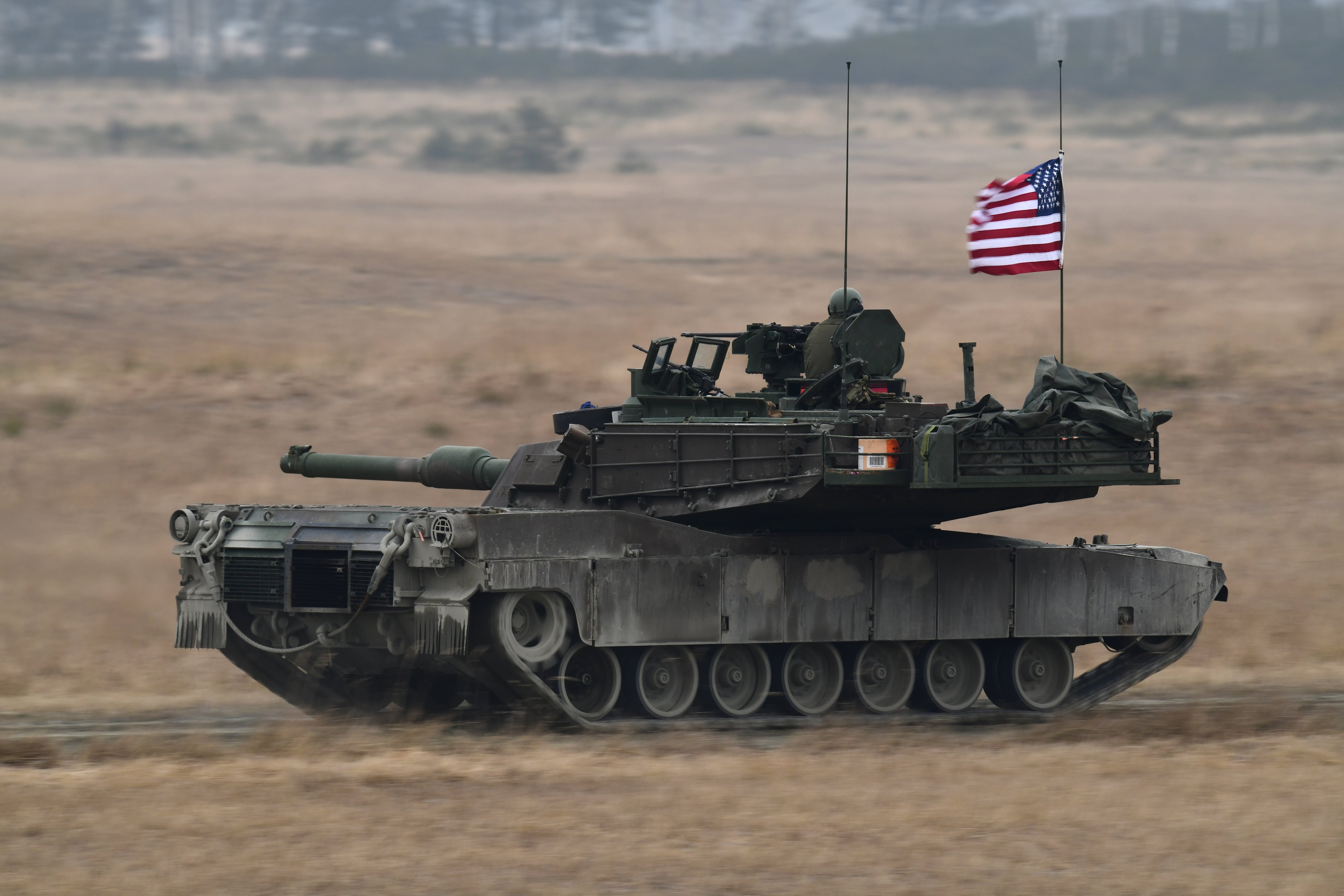 U.S. Army tankers assigned to the 3rd Infantry Division drive their Abrams M1A2 tank toward targets on the offensive lane during the U.S. Army Europe and Africa International Tank Challenge at 7th Army Training Command’s Grafenwoehr Training Area, Germany, Feb. 14. (Kevin Sterling Payne/U.S. Army)