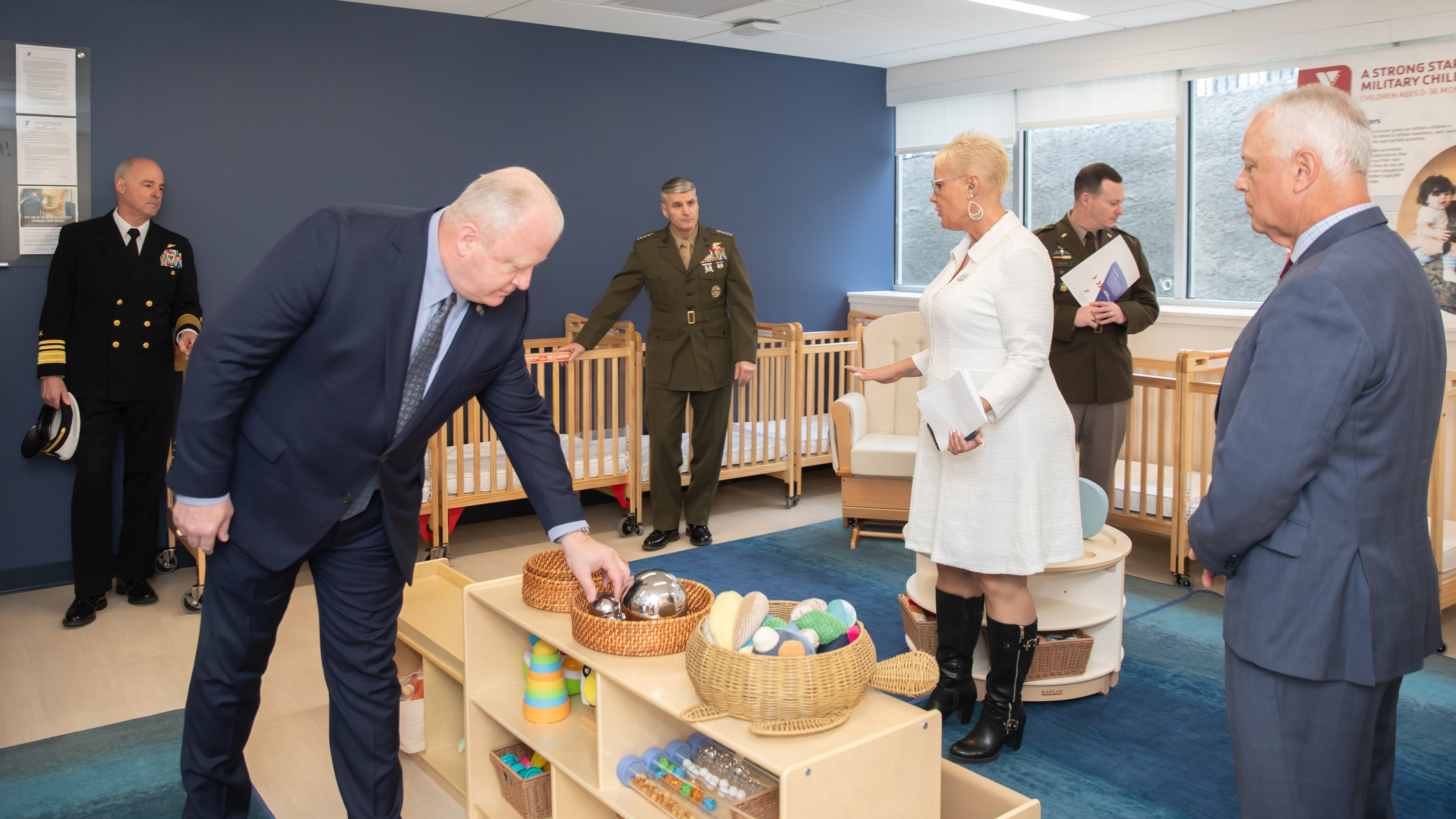 Officials tour a new child care facility for military children in Arlington, Va., on Feb. 25. (Trish Alegre-Smith via Virginia Johnston)