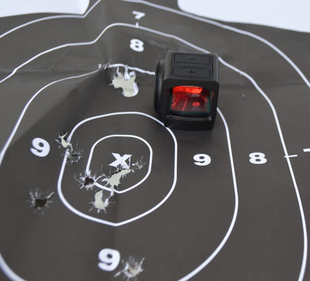 • Dynamic drills: Fast, target-focused, both-eyes-open shooting at 7, 10, and 15 yards felt natural. The small tunnel effect of the enclosed emitter seemed to help target focus and speed.
