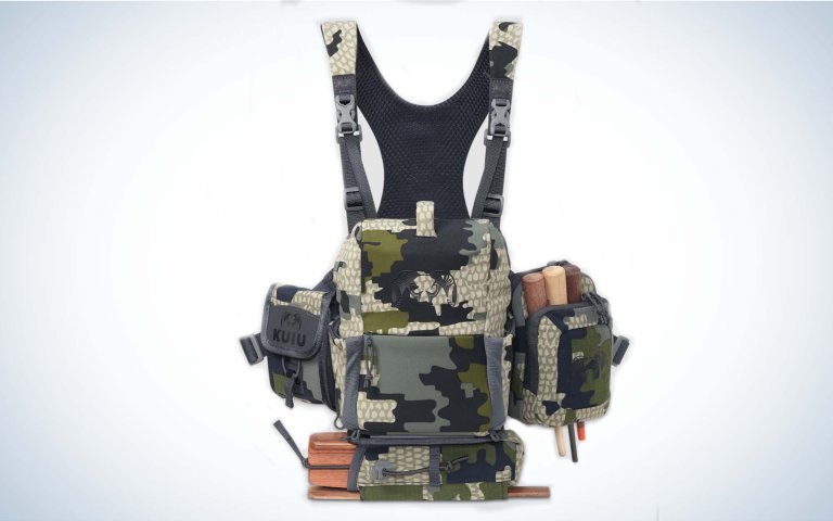 The Kuiu Turkey Kit is simply a few modular accessories that attach to the brand’s Pro G3 Bino Harness. It includes three pouches — a box call holder, a pot call holder, and a rangefinder pocket that also works for stowing extra shotshells. One great thing about this set-up is that the turkey-specific accessories can be quickly added for spring turkey hunting and then removed before deer or elk season. There’s no need to buy a whole new turkey vest when you can customize a bino harness that can pull double duty in the fall.